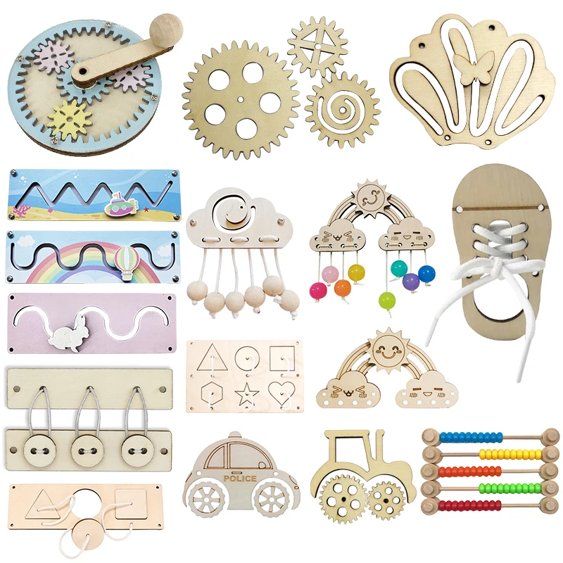 Montessori Busy Board DIY Accessories Wooden Toys Busyboard Baby Fine Motor Skills Activity Board Educational Toys for Children
